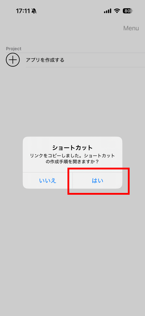 A dialog showing the shortcut creation procedure will appear — tap “Yes”.