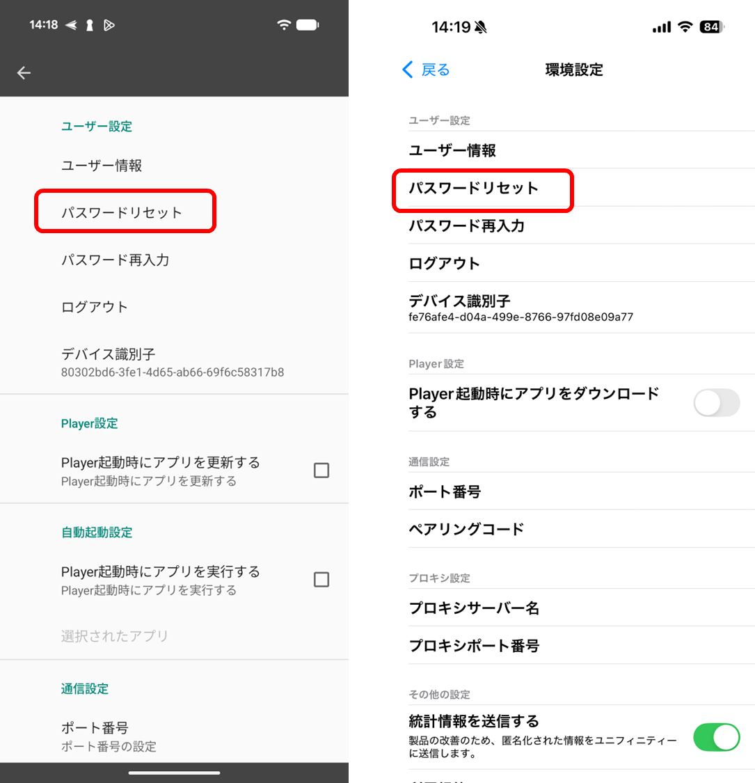 Open the menu, select Settings, then tap Password Reset. - Confirm the reset request.