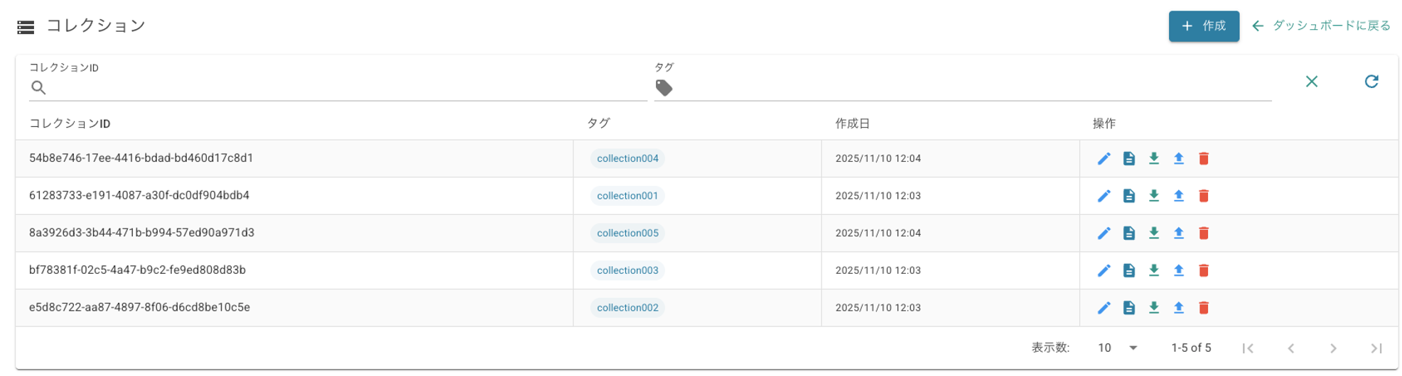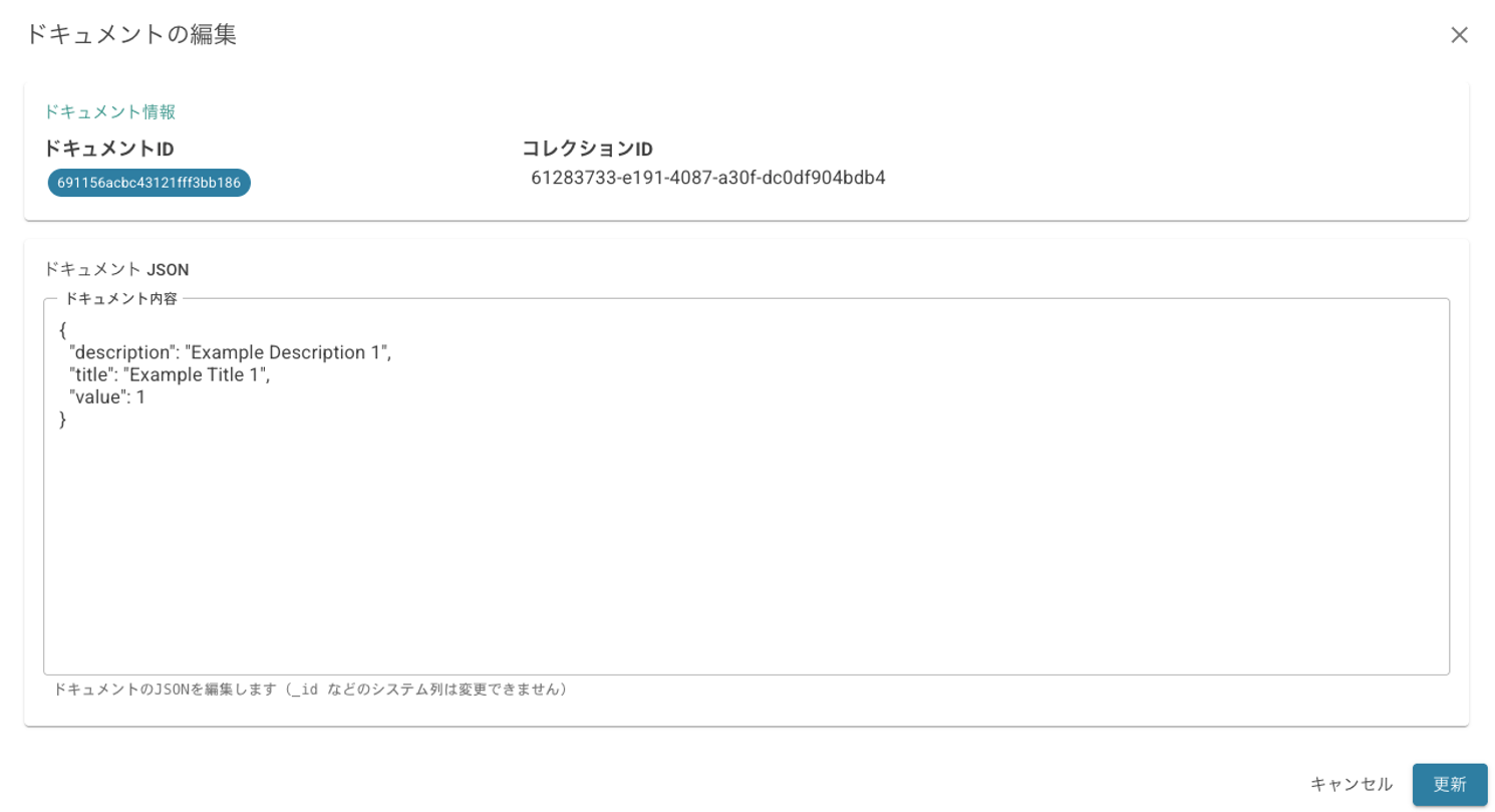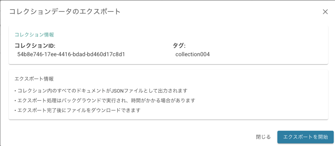 Click the [delete] button in the collection list to display a confirmation dialog and delete the collection. All documents contained in the collection will also be deleted.