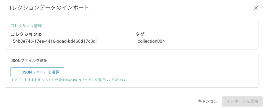 Select a file and click Start Import. Data will be imported into the collection.