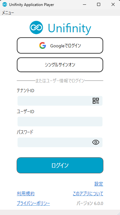 The authentication screen of Unifinity Application Player has been redesigned.