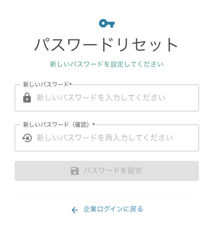パスワードリセットURLを開くと、次の画面が表示されます。新しいパスワードを入力し、パスワードを設定してください。