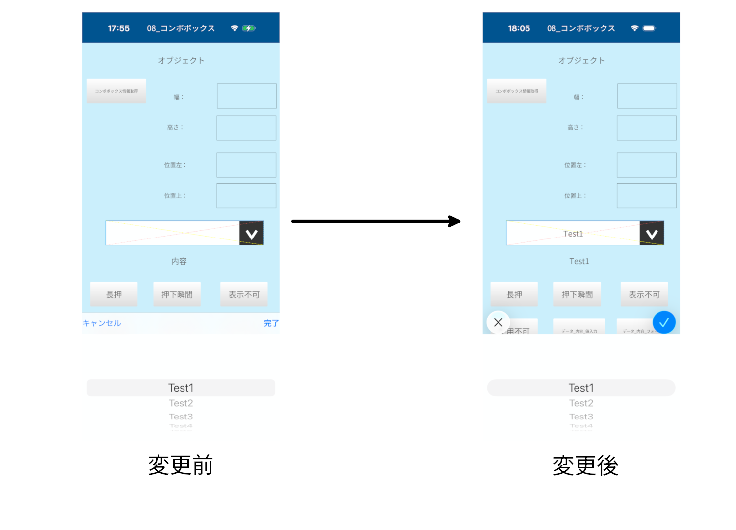 コンボボックスの完了/キャンセルがアイコン表示に変更となりました。