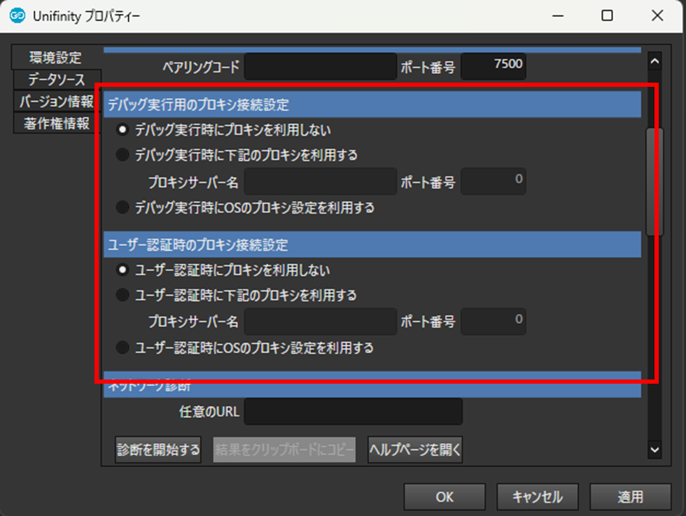 また、プロキシの設定項目をUnifinity Application Playerに合わせ「プロキシを使用する」のチェックボックスは廃止いたしました。Unifinity Studioの以前のバージョンでプロキシを設定されていた場合は、お手数ですが本バージョンでプロキシの再設定をお願いいたします。